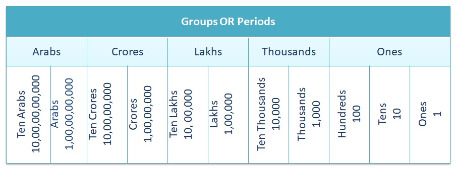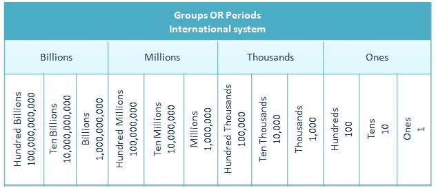 object used to count, measure, and also label. In HINDU – ARABIC system, we have TEN DIGITS, namely 0,1,2,3,4,5,6,7,8,9 called zero, one, two, three, four, five, six, seven, eight and nine respectively. ![]() A NUMBER is denoted by a group of digits, called NUMERAL. Some Examples: # Example-01 A given NUMERAL is – ‘547194’. We have to write this numeral IN WORDS, that is – 'Five lakh forty-seven thousand one hundred ninety-four' # Example-02 A NUMBER is given in words; we have to write this number in figures (using digits) – 'Five crore four lakh eight thousand five' so in figures it will be - '50408005' ------------------------------------------------------------------------------------------------------------------------ 1. 0, 1, 2, 3, 4, 5, 6, 7, 8 and 9 are the digits used in forming a number. 2. The numbers 1, 2, 3, 4, 5, … are called counting numbers or natural numbers. 3. If two numbers are not equal, then one is either greater than OR lesser than the other. 4. If different digits are given, we can form numbers by keeping the digits in different places. 5. To make the LARGEST NUMBER using the given digits, ARRANGE the digits in DESCENDING ORDER. 6. To make the SMALLEST NUMBER using the given (non-zero) digits, arrange the digits in ASCENDING ORDER. IF given digits contains ‘0’ (zero), then put ‘0’ (zero) at the SECOND POSITION from EXTREME LEFT and rest of the digits in ASCENDING ORDER. 7. There are TWO SYSTEMS of READING and WRITING numbers – the INDIAN SYSTEM of numeration and the INTERNATIONAL SYSTEM of numeration. 8. PLACE VALUE and FACE VALUE - the PLACE VALUE of a digit in a number depends upon the place it occupies in the place value chart. The FACE VALUE of a digit in a numeral is the value of the digit itself. 9. The INDIAN Place value chart is given below: ![]() 10. In a given Numeral, periods are separated by using commas. 11. In the Indian system of numeration, first comma is placed after three digits from the right and other commas come after every two digits to the left of the first comma. 12. In the International System of Numeration, comma is placed every three places, starting from Right. The International Place Value chart is given below.